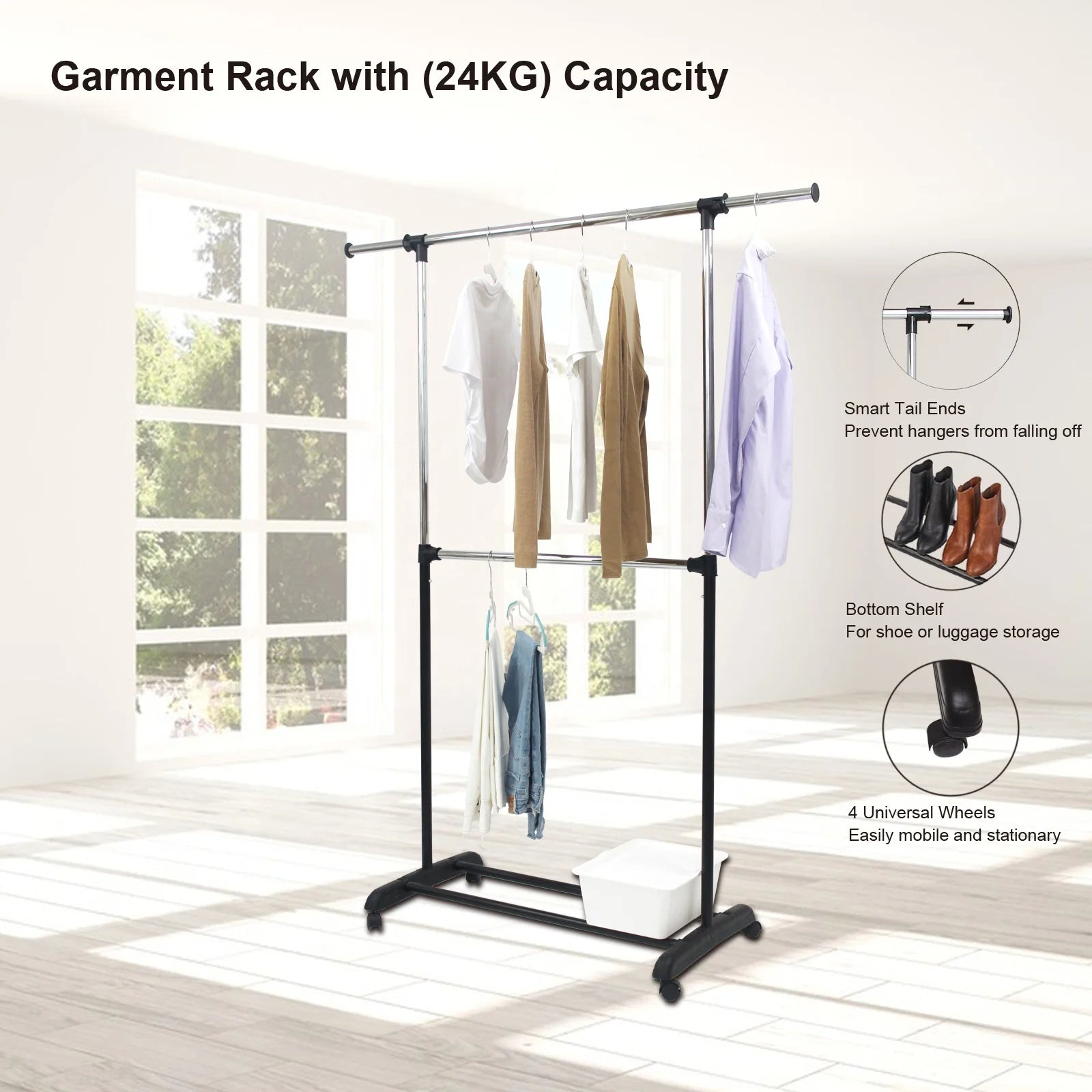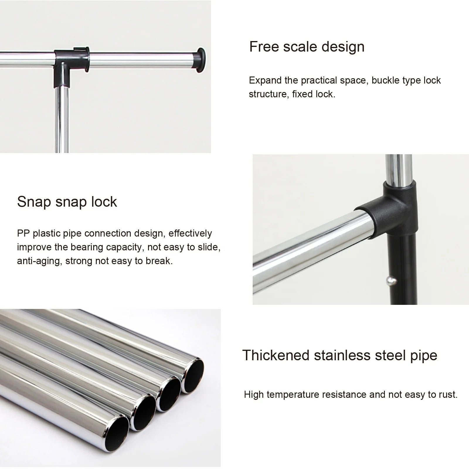 احصل على تنظيم مثالي في منزلك مع علاقة الملابس المصنوعة من الستانلس ستيل، بارتفاع قابل للتعديل وقضيب ممتد. تحتوي على رف سفلي لتخزين إضافي مثل الأحذية أو الصناديق أو الحقائب. قوية ومحمولة وسهلة التركيب، مما يجعلها مثالية لغرف النوم أو الغسيل أو الاستخدام المؤقت. حل عملي وأنيق لتلبية جميع احتياجات التخزين