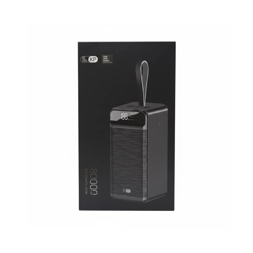 Stay powered anywhere with the KP (King Power) high-capacity power bank. Built for heavy use, this powerful 80000mAh battery is ideal for charging multiple devices multiple times—perfect for travel, work, or emergencies.