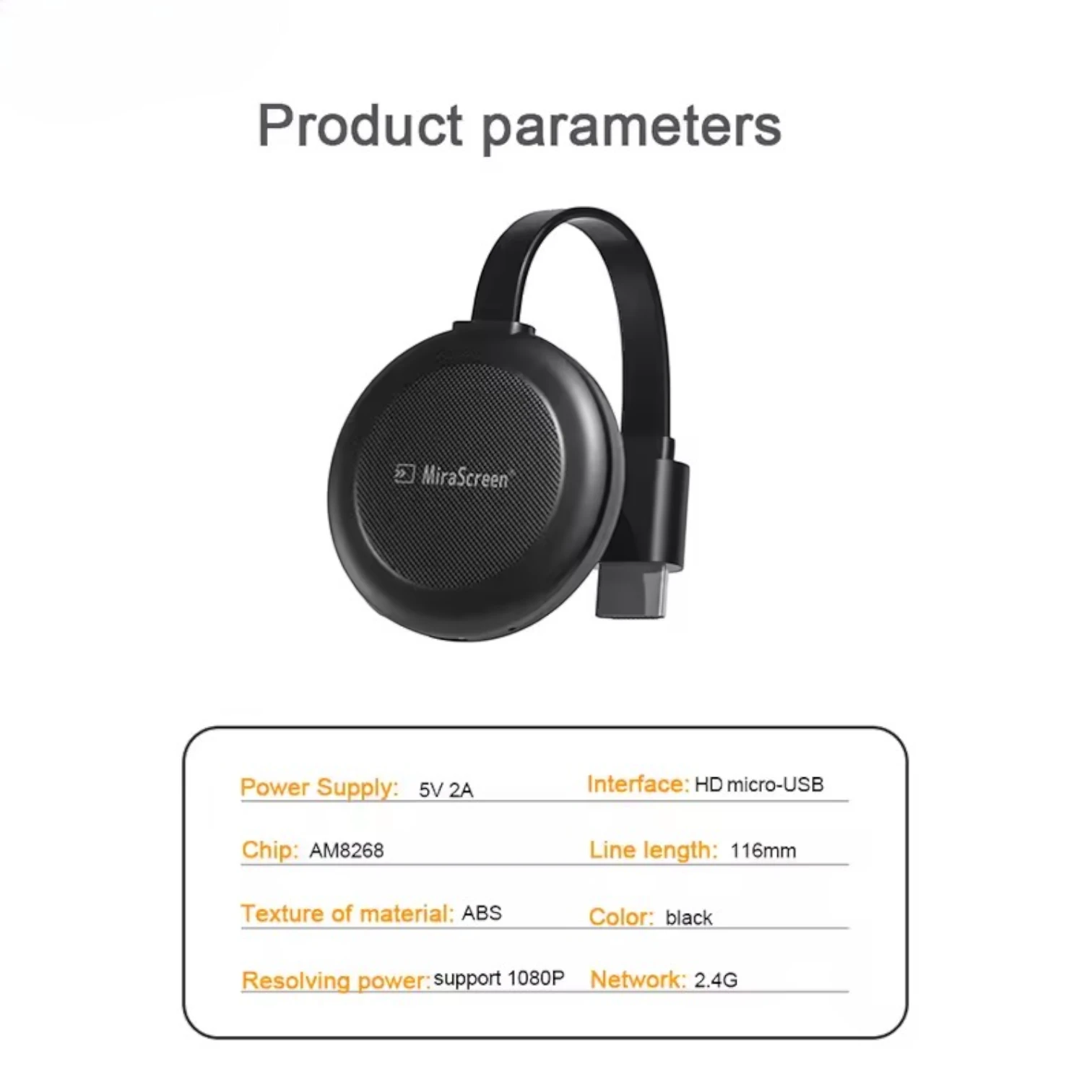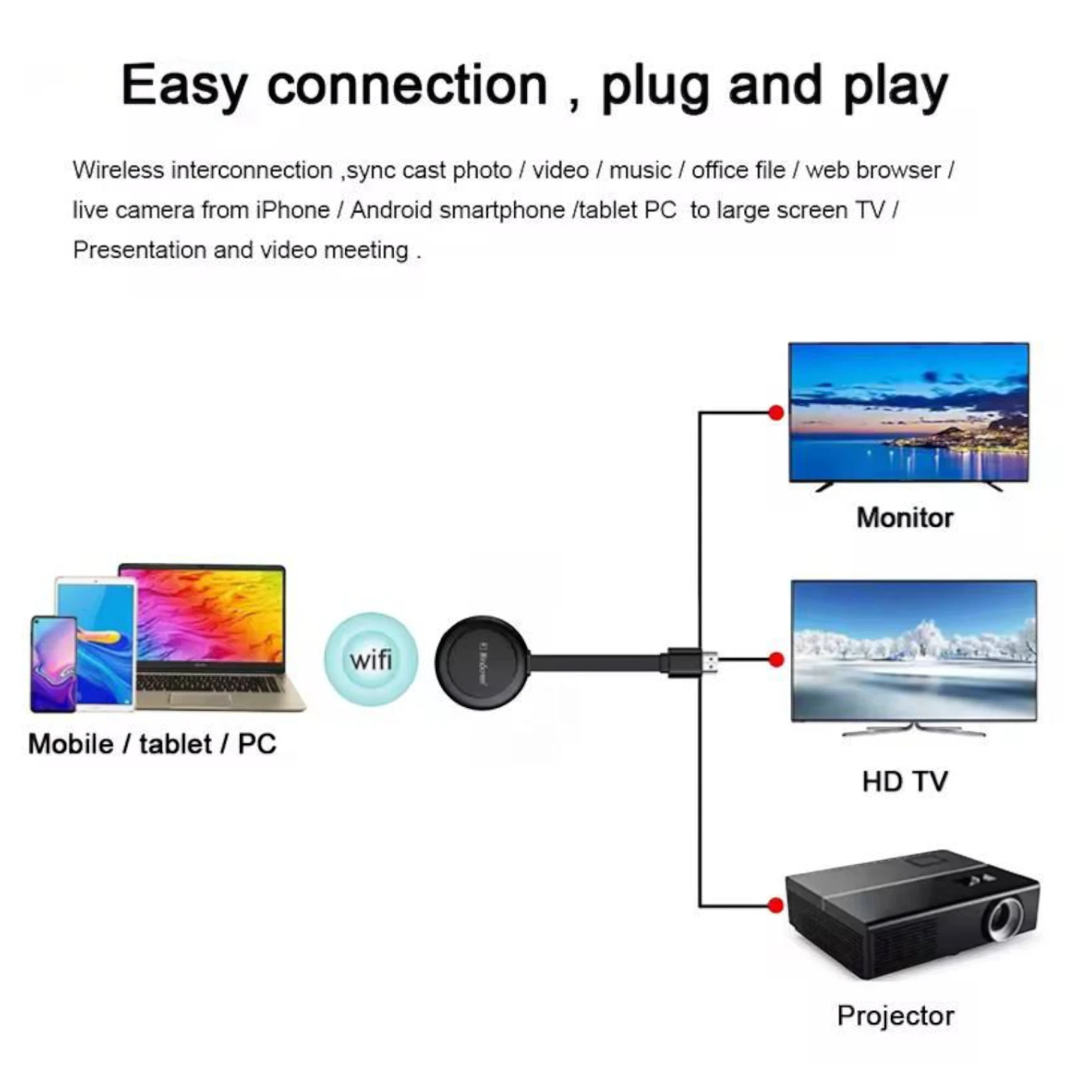 Simply plug it into the HDMI port and start casting wirelessly—perfect for watching videos, sharing photos, giving presentations, or even gaming on a larger screen. Its wide compatibility with Android, iOS, and Windows devices makes it a versatile solution for everyday use.
