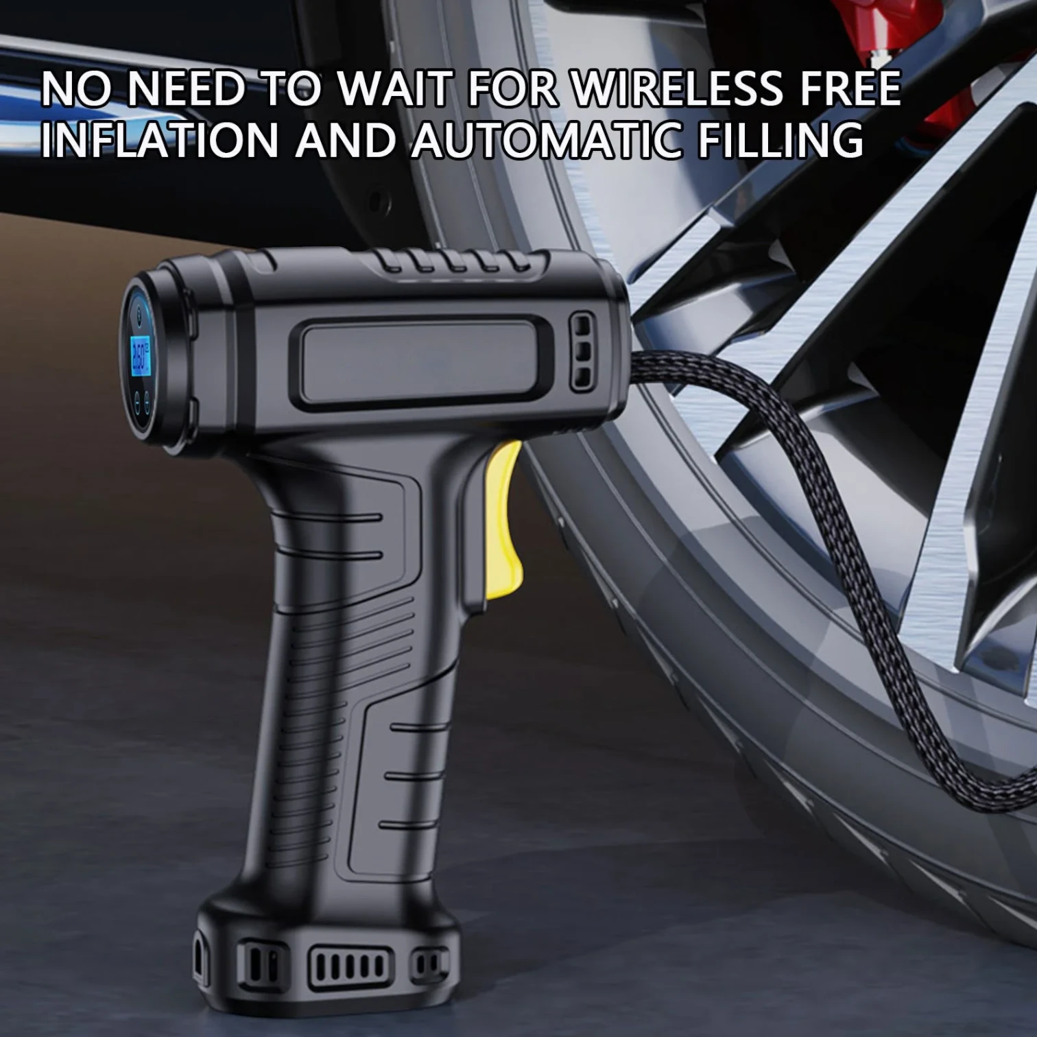 Equipped with a clear digital display, it allows you to monitor pressure accurately and inflate with confidence. Its portable design makes it convenient to store in your car and use whenever needed, whether for cars, motorcycles, bicycles, or sports equipment.
