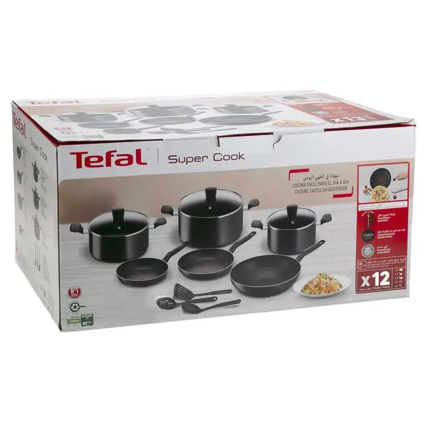 Tefal Super Cook 12PCS Non-Stick Cookware Set – Durable Pots & Pans with Utensils